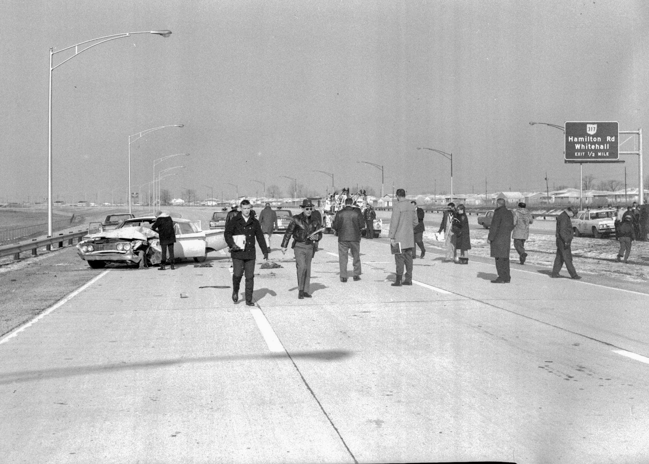 Pictured are Deputies in Training in 1967. They are on scene of a traffic accident on I-70 just East of Hamilton Rd.